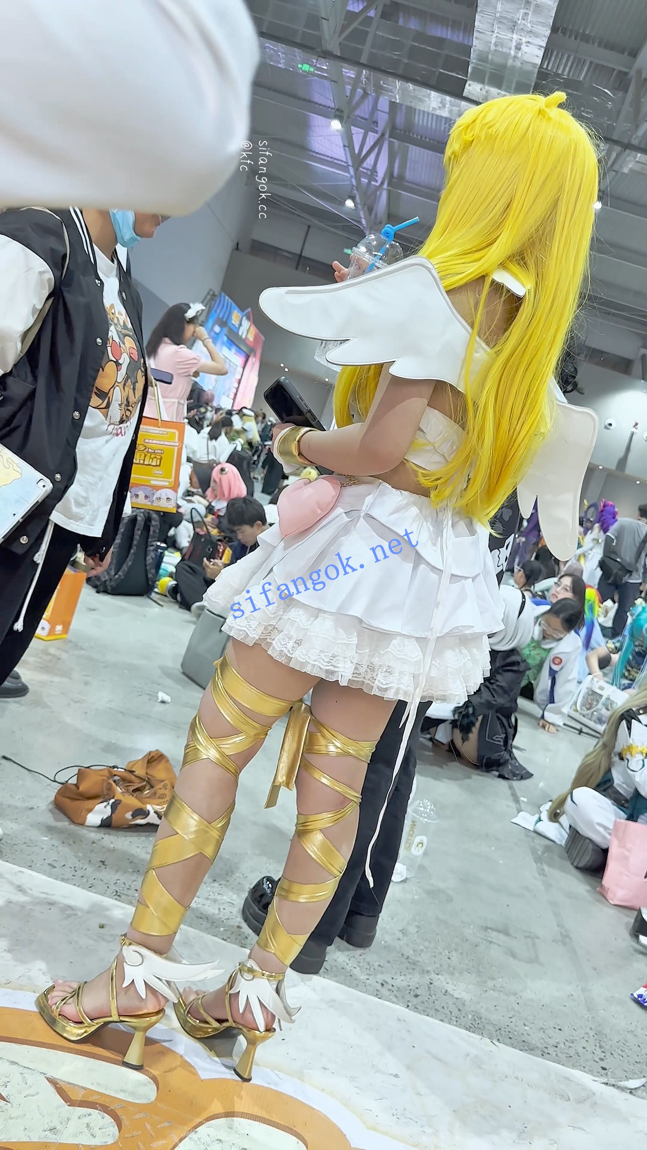 萌妹COSER喜欢翘屁股·估计是逛累了,看着他在那揉腿,想坐下,身边全是坐地上的,妹子那里有点脏,果断过去帮她一把,架好伪装等着她上钩,妹子一直没注意身后已经有了椅子,但是总有来拍照的,一直蹲起蹲起,正好拍下了翘起屁股的后入视角,最后妹子在相机上站了好久没坐上去,不过全程记录了两腿之间的每个动作,清晰度很高,值得收藏
