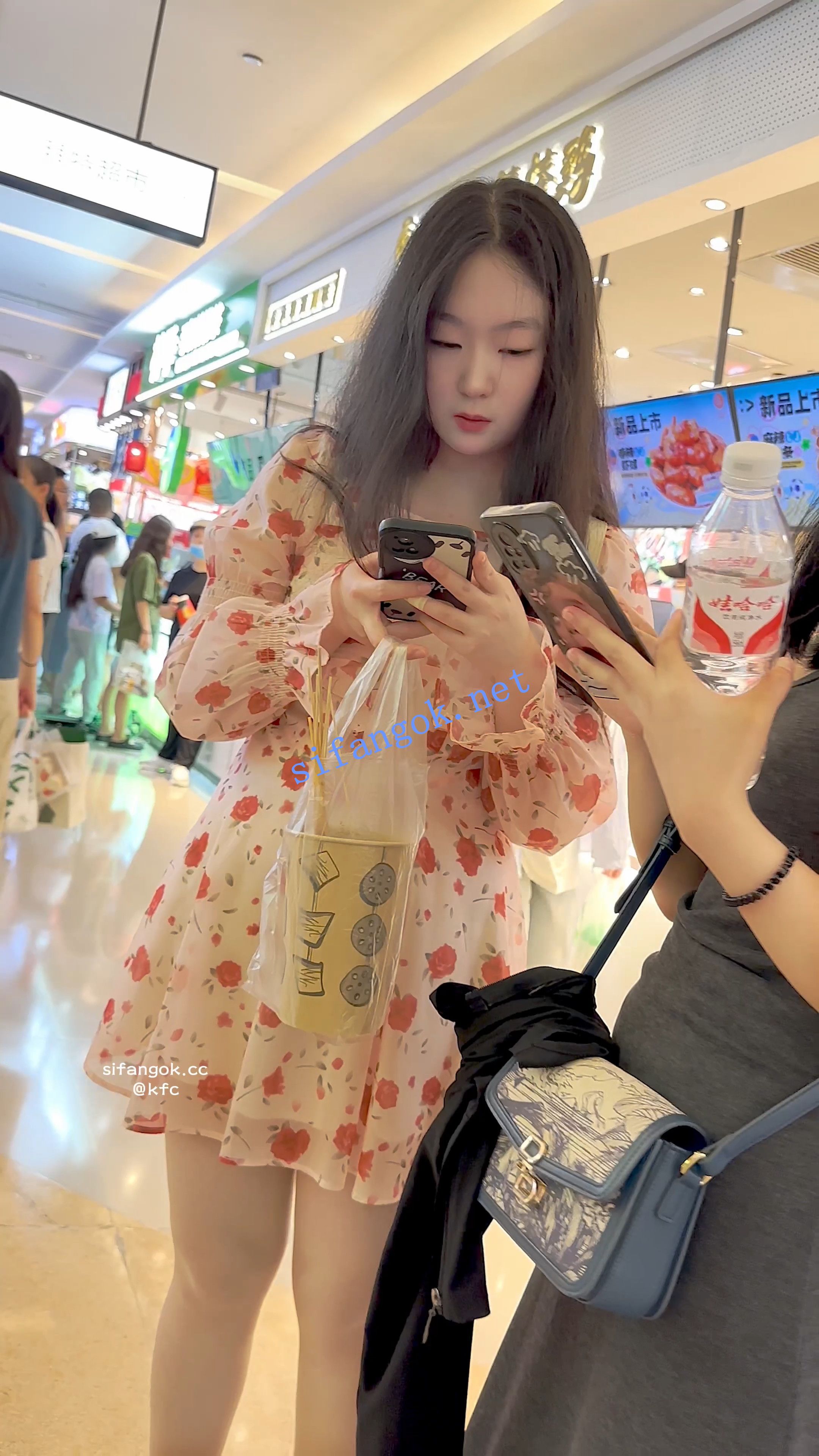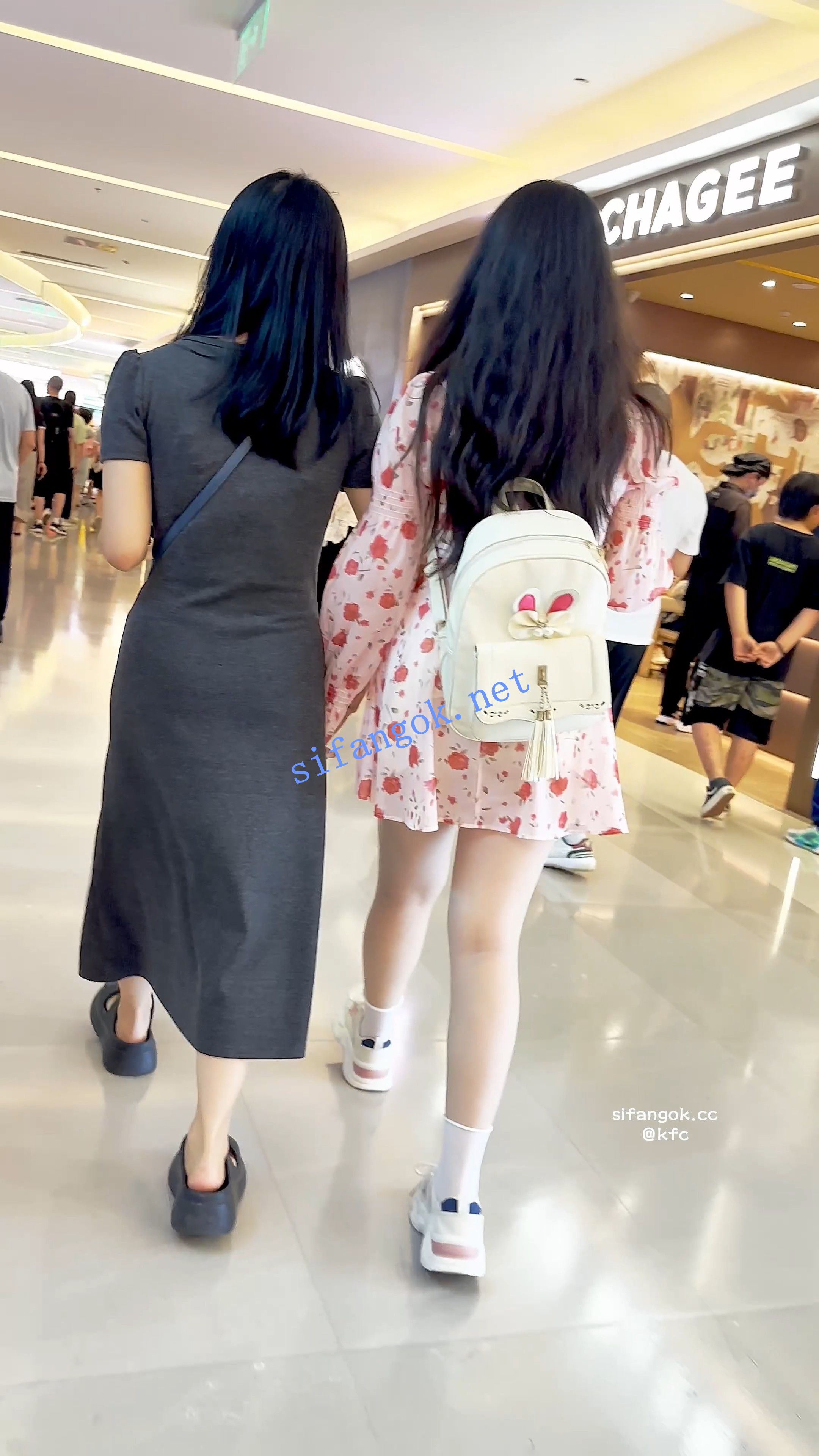 【KFC】长裙学生和闺蜜逛街买小吃·前后CD肉色丝袜半透内内
