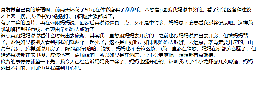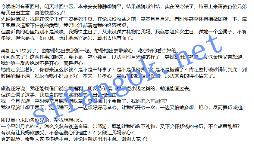 47.求助,妈妈生日快到了,想带她旅游给她送礼物,但说不清钱来历怕她担心